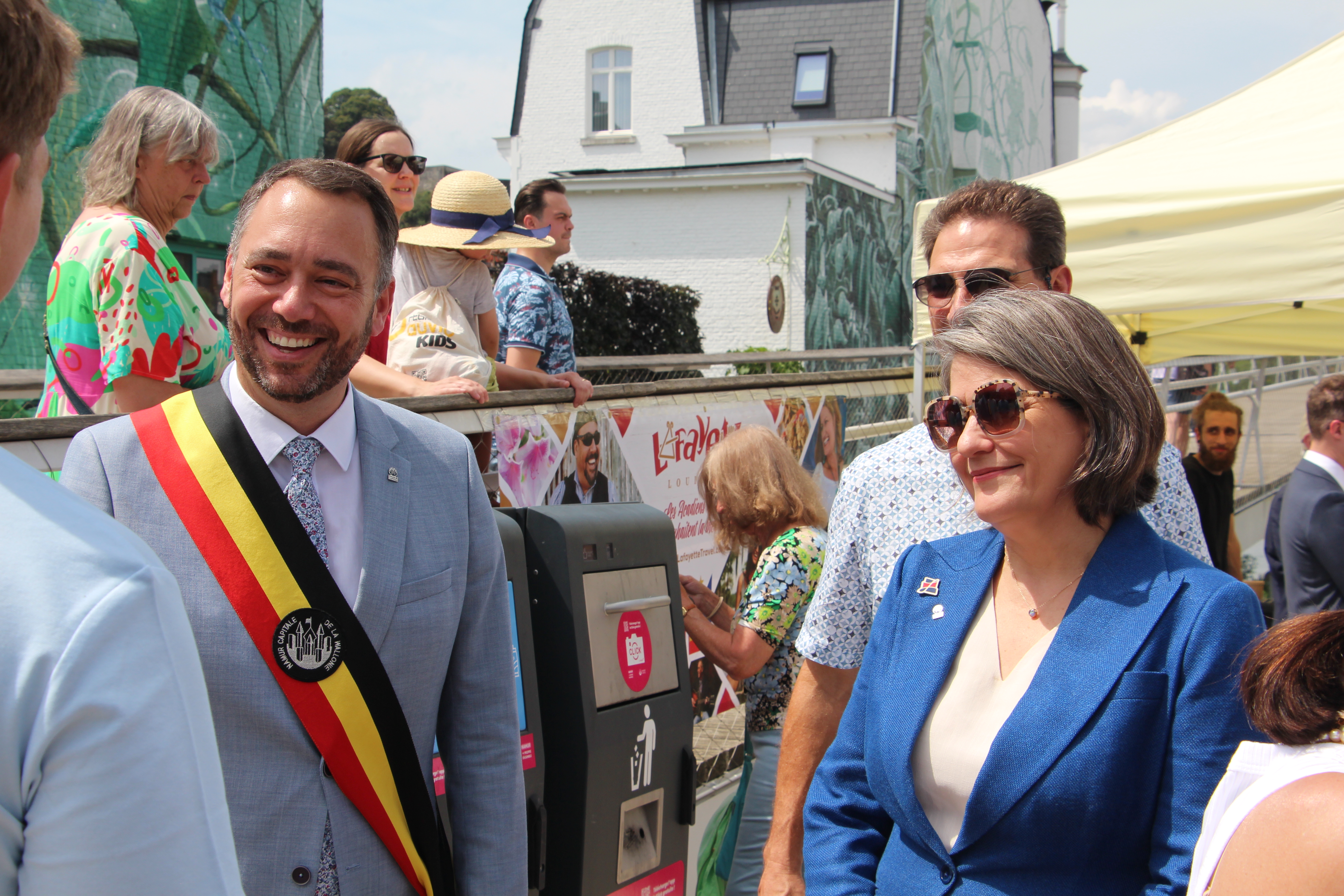 Réunis à l’occasion du 45ème anniversaire de jumelage, les Maires de Lafayette, Mme Monique Boulet et de Namur, M. Maxime Prévot, ont inauguré ce samedi 20 juillet 2024, une exposition intitulée “Lafayette, le cœur de la Louisiane francophone” au Square de la Francophonie à Namur. Une convention a également été signée entre l’Université de Namur et l’Université de Louisiane à Lafayette. Cette célébration entre les deux villes témoigne de l’engagement mutuel à renforcer les liens culturels, académiques et humains.