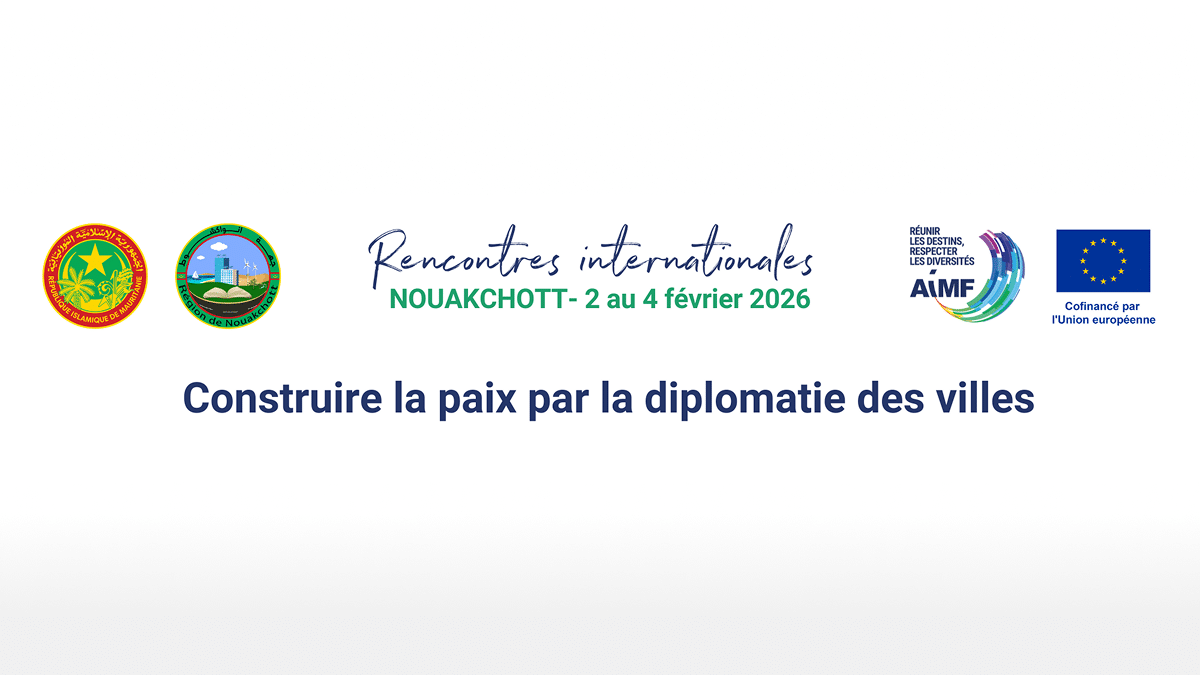 Bannière des Rencontres internationales de Nouakchott 2026 - Construire la paix par la diplomatie des villes - AIMF